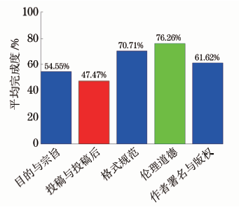 图1 33种SCI收录的英文生物医学期刊稿约中5类项目平均完成度