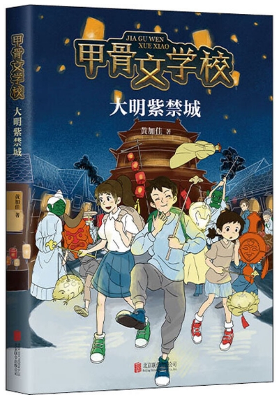 《大明紫禁城》由新经典文化·爱心树童书品牌策划,北京联合出版公司出版。该书延续了“甲骨文学校”系列故事的设定,讲述了悠悠、田田和小布丁暑假游学故宫时,跟着一只会说话的蟋蟀,穿越到了600年前明朝永乐时期的北京城。故宫、天地坛、大运河、鼓楼、什刹海、前门等在课本中常常出现的地标建筑,在冒险三人组的视角下,一一展现在小读者们眼前。北京中轴线上近40处古建筑、老北京民俗文化及方言特点等也融入到趣味冒险故事中。