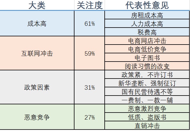 从意见反馈中管窥得中盘商压货严重、发货重复率高、盲目发货等现象。从书店角度,店面产品堆积如山,影响读者实际体验和舒适度,收、退货也提高物流成本。从中盘商角度,发货囤积较多,从资金占用、物流及人工、产品推广成本均较高。从发行商角度看,盲目推货、滞销产品退货及报废等事项形成经营压力。